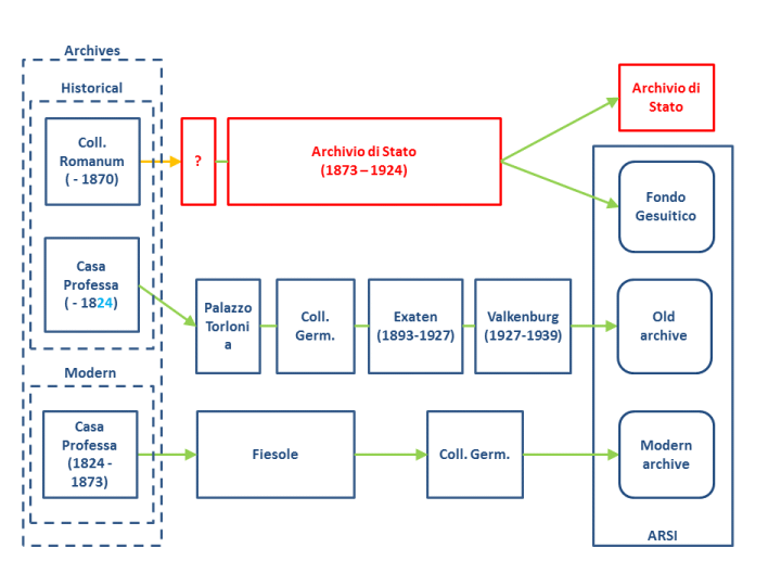 The material in the Fondo Gesuitico was found in a hidden room in the Palazzo del Collegio Romano after the confiscation of Jesuit possessions. A handwritten catalogue of this collection is >>available here.