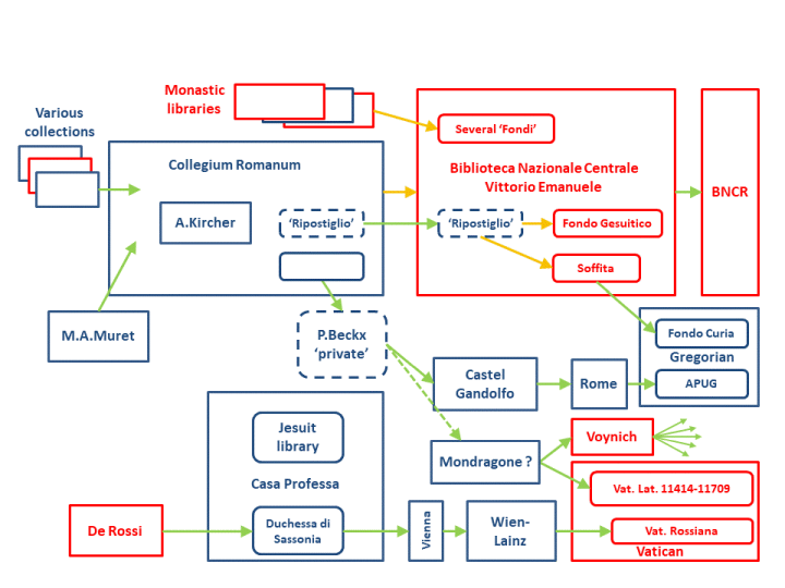 A general description of the Roman (Jesuit) history of the Voynich MS may be found here, and the named repositories are all indicated in IMG: this overview, or in IMG: this overview.